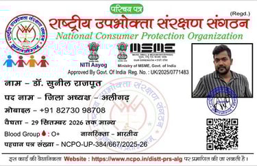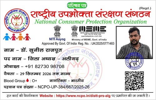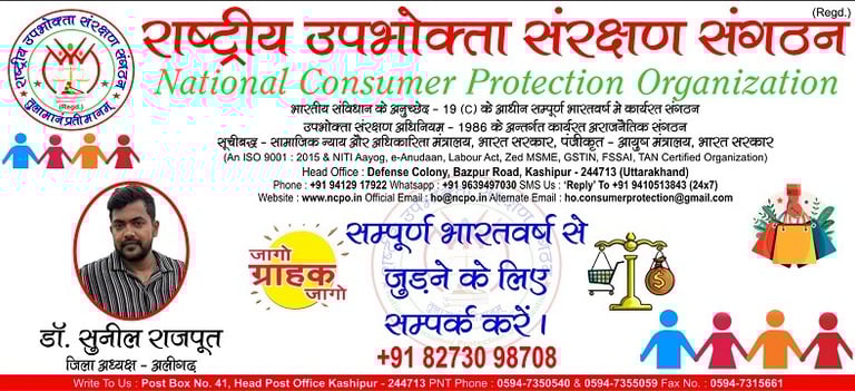"राष्ट्रीय उपभोक्ता संरक्षण संगठन" से जुड़ने के लिए संपर्क करे ।