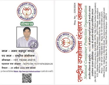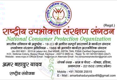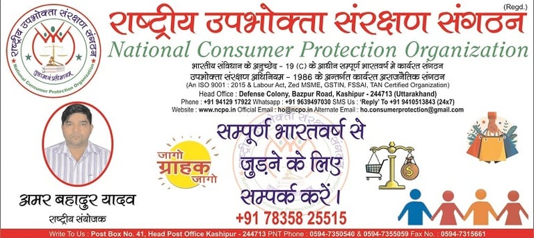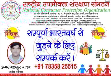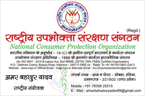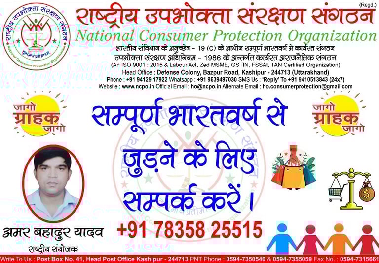 "राष्ट्रीय उपभोक्ता संरक्षण संगठन" से जुड़ने के लिए संपर्क करे ।