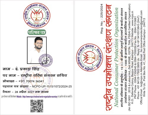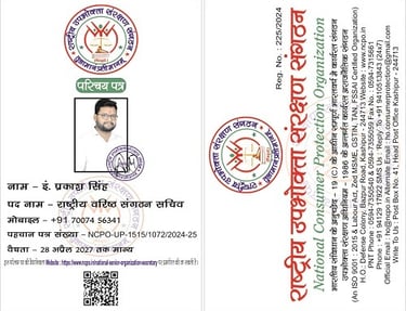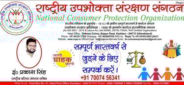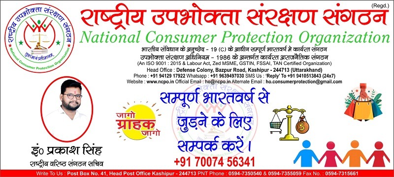 "राष्ट्रीय उपभोक्ता संरक्षण संगठन" से जुड़ने के लिए संपर्क करे ।
