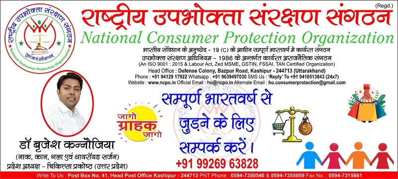 "राष्ट्रीय उपभोक्ता संरक्षण संगठन" से जुड़ने के लिए संपर्क करे ।